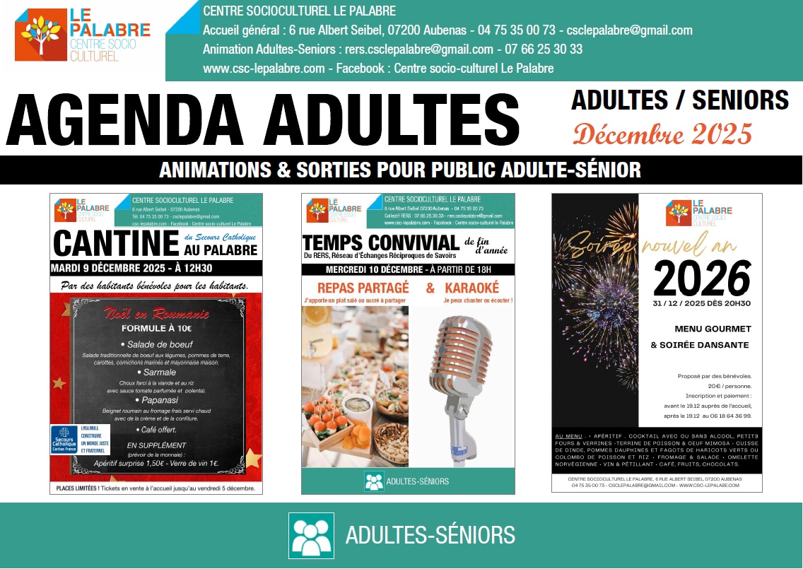 AGENDAS : Versions papiers disponibles auprès de l’accueil & Affichage à l’intérieur et à l’extérieur du centre.
