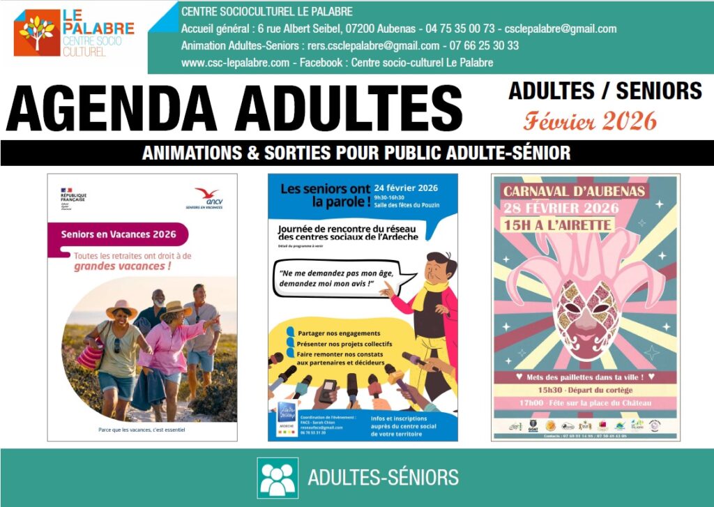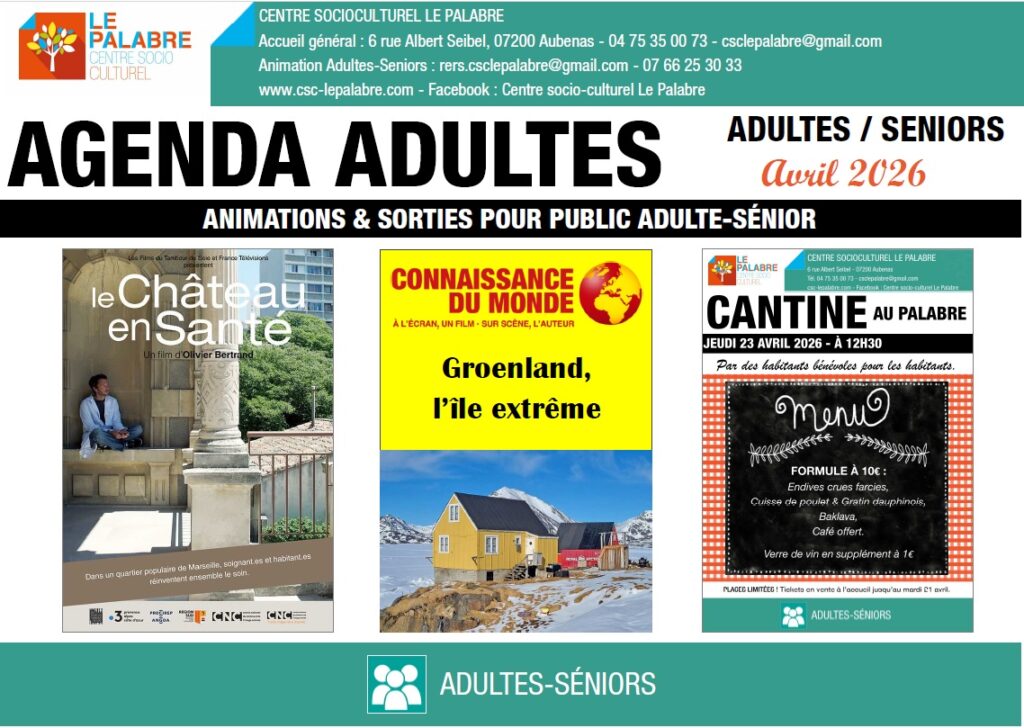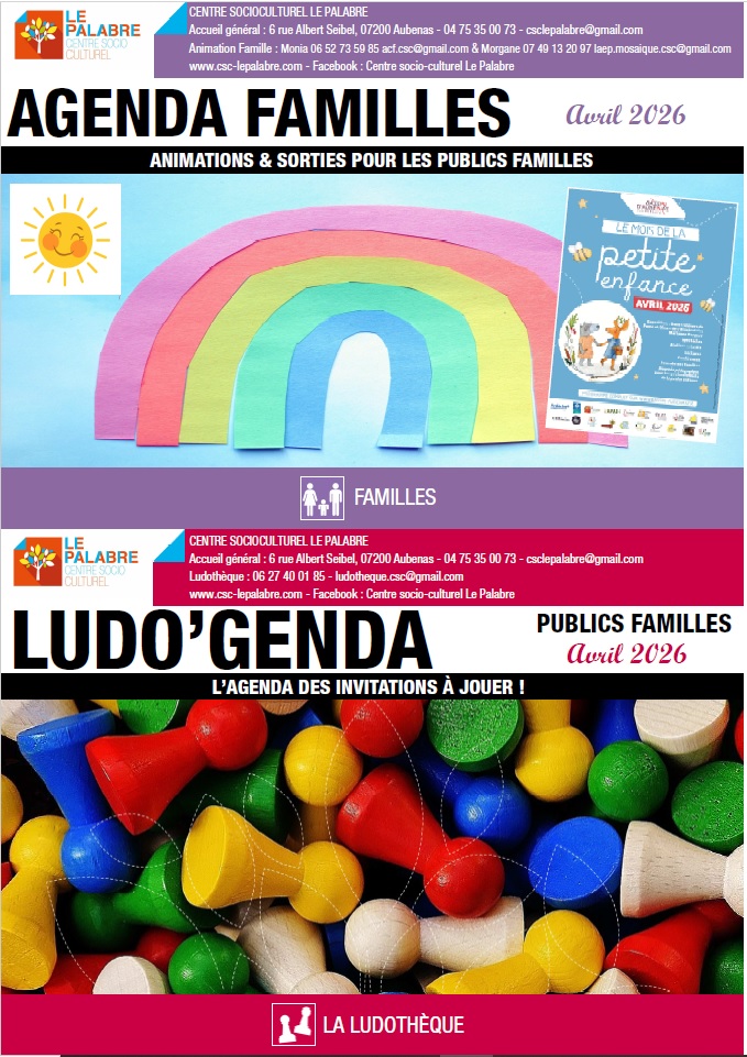 AGENDAS : Versions papiers disponibles auprès de l’accueil & Affichage à l’intérieur et à l’extérieur du centre.