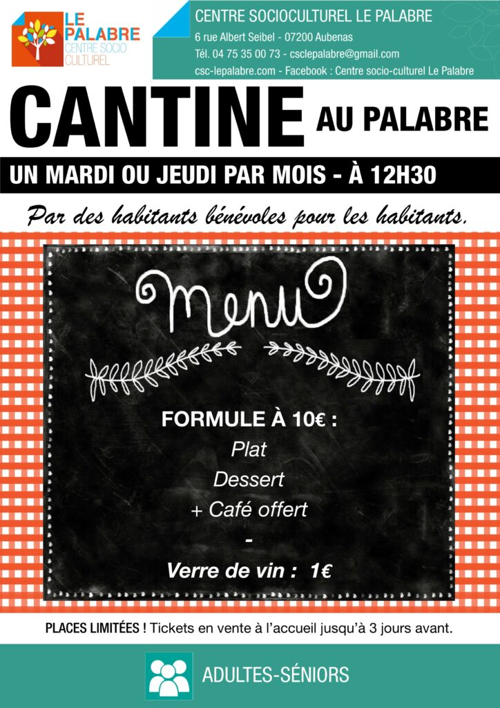 Les cantines sont des repas collectifs (pour 50 personnes) imaginés, organisés et cuisinés par des bénévoles ou des collectifs d’habitants, dans un esprit de partage désintéressé ou pour récolter des fonds pour mener à bien une action collective. La formule est toujours la même : Plat + Dessert 10€ – Café offert – verre de vin en supplément à 1€ – Menus de qualité, originaux, exotiques, parfois végétariens pour rester accessibles.
