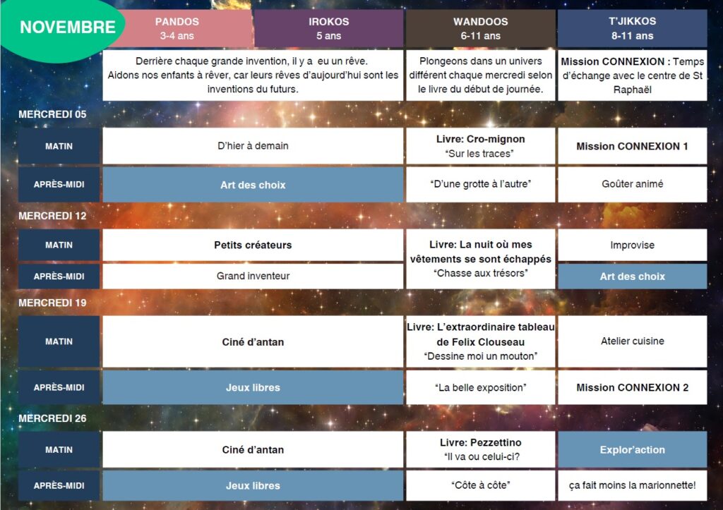 PROGRAMMES : Mercredis 3-11 ans – Vacances 3-11 ans – Vacances 11 ans et +